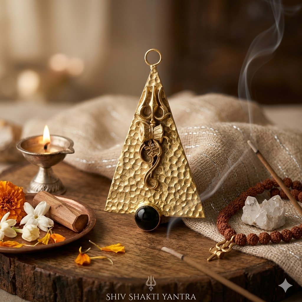 Designed with sacred Trishul and Om symbols, it helps remove physical, mental, and spiritual obstacles.